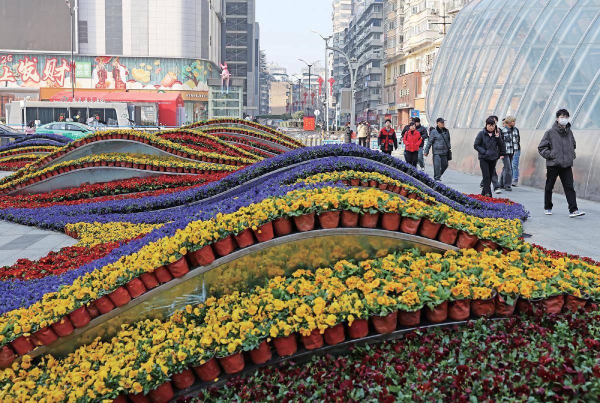 12日,交通路步行街前,花卉扎景色彩艷麗。為喜迎新春,黃石港區(qū)在城區(qū)重點區(qū)域擺放鮮花5.3萬余盆,讓城市處處花團(tuán)錦簇、生機(jī)盎然。值得一提的是,元旦期間步行街?jǐn)[放的萬余盆花卉經(jīng)專業(yè)養(yǎng)護(hù)后再次利用,實現(xiàn)春節(jié)“再上崗”,既減少資源浪費,又提升城市景觀品質(zhì),取得景觀效果與成本控制雙贏。黃石融媒記者 熊嶠 攝