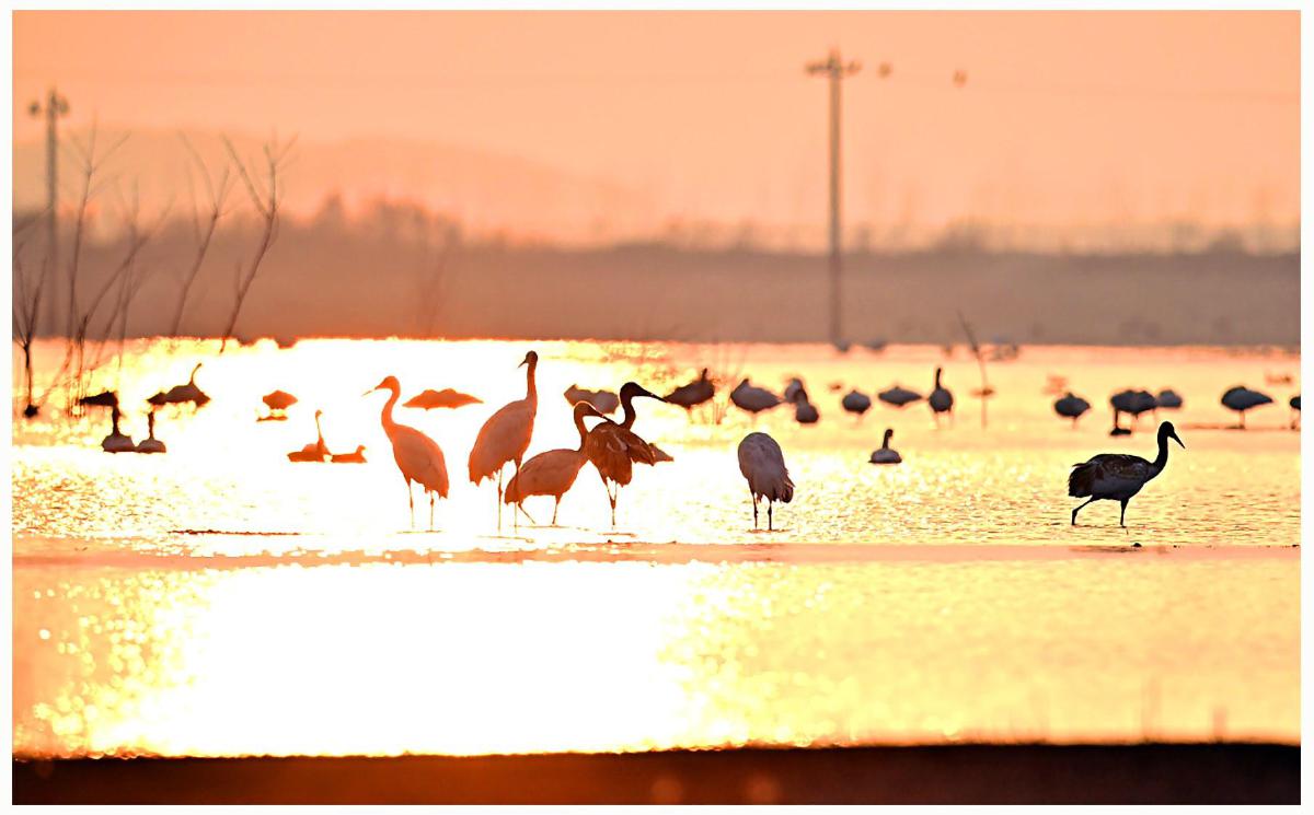 夕陽下的網湖——白鶴歸來 柯聞峻 攝