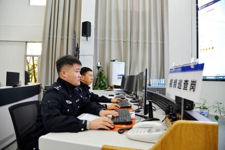 民警在情指中心調(diào)度指揮
