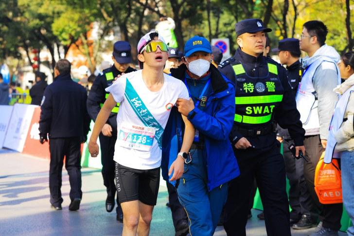 民警與救援人員救助跑者