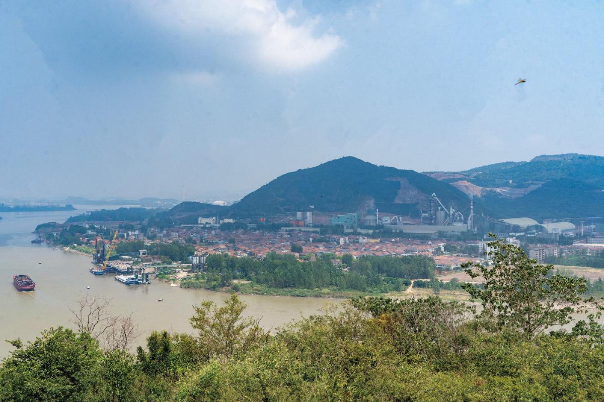 登山遠(yuǎn)眺,長江煙波浩渺,航道船舶來往不斷。滾滾江水對面,田家鎮(zhèn)清晰可見。