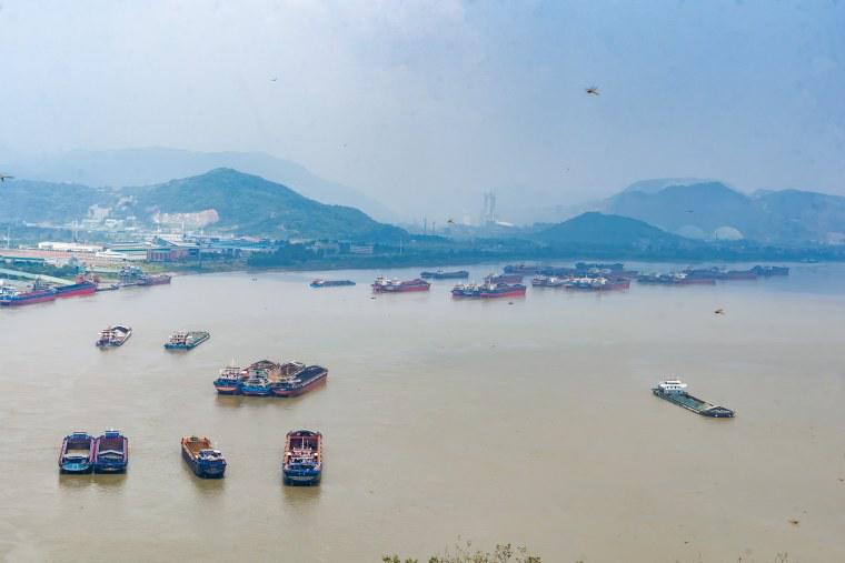 登半壁山遠(yuǎn)眺,長江煙波浩渺,航道船舶來往不斷